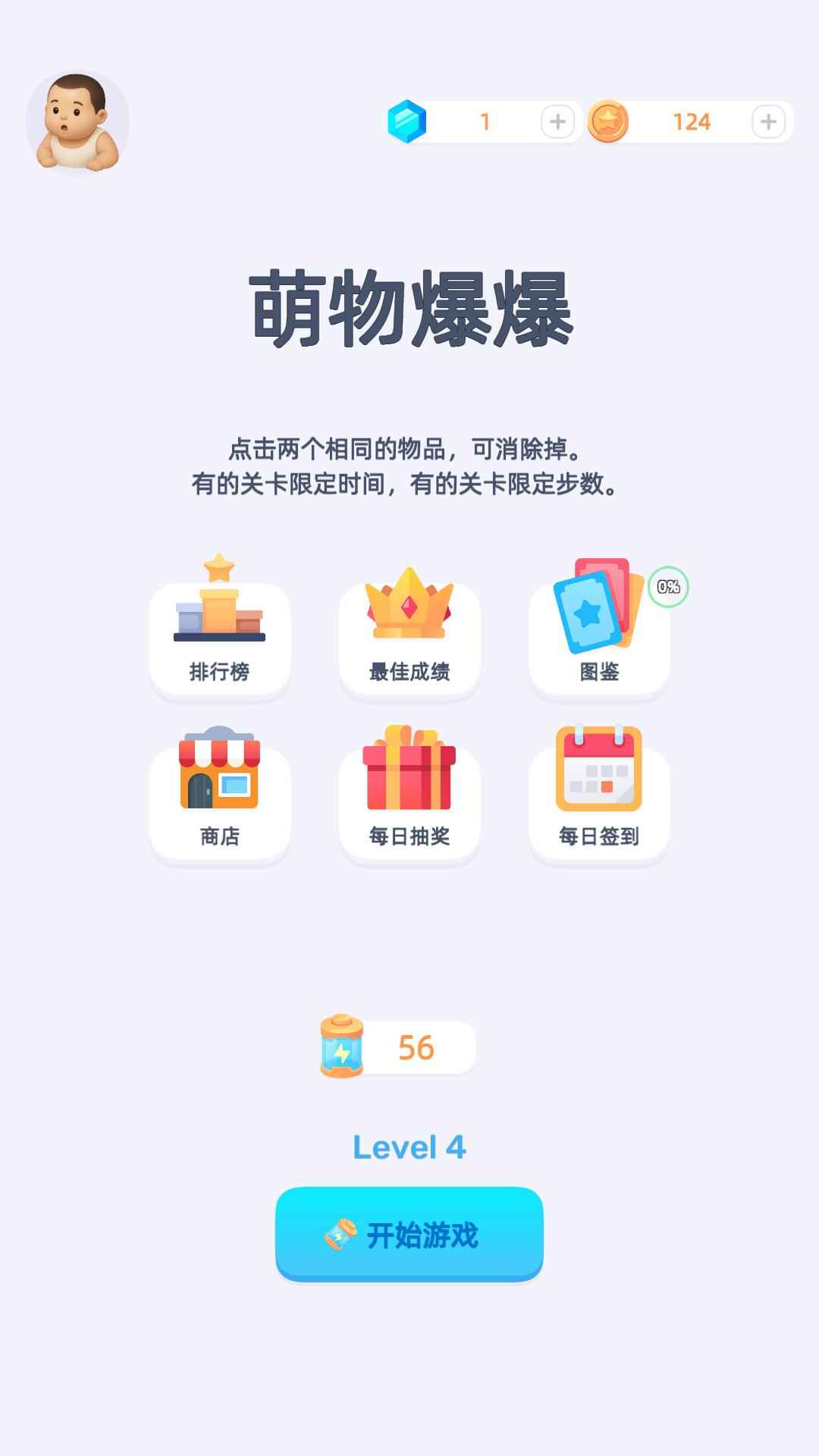 简介《萌物爆爆》是一款一打开就会忍不住“哇,好可爱!”的超休闲配对小游戏。 玩法简单到不能再简单: 看到两个一模一样的小动物?点一下,就爆掉了! 没有操作门槛、没有时间压力、没有失败惩罚。 就是纯粹的放松、纯粹的可爱、纯粹的爽。 无论你是在上班摸鱼、坐车发呆、睡前放松, 《萌物爆爆》都会让你不知不觉玩到停不下来。