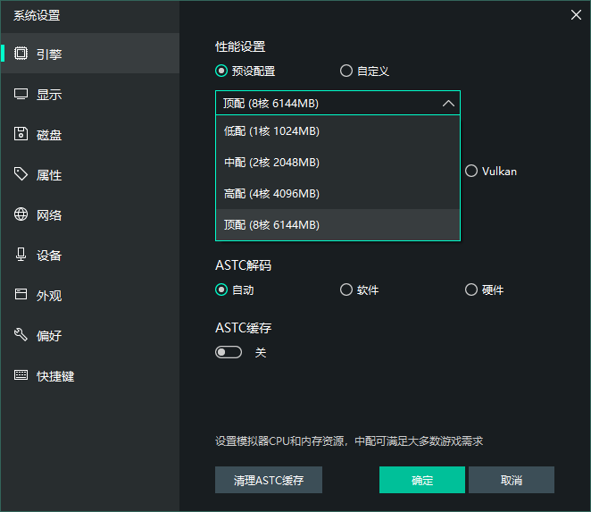 其次,如果在玩大型的游戏比较卡顿的时候,可以在模拟器的设置界面里根据自己电脑的配置,将CPU和内存调大进行使用。