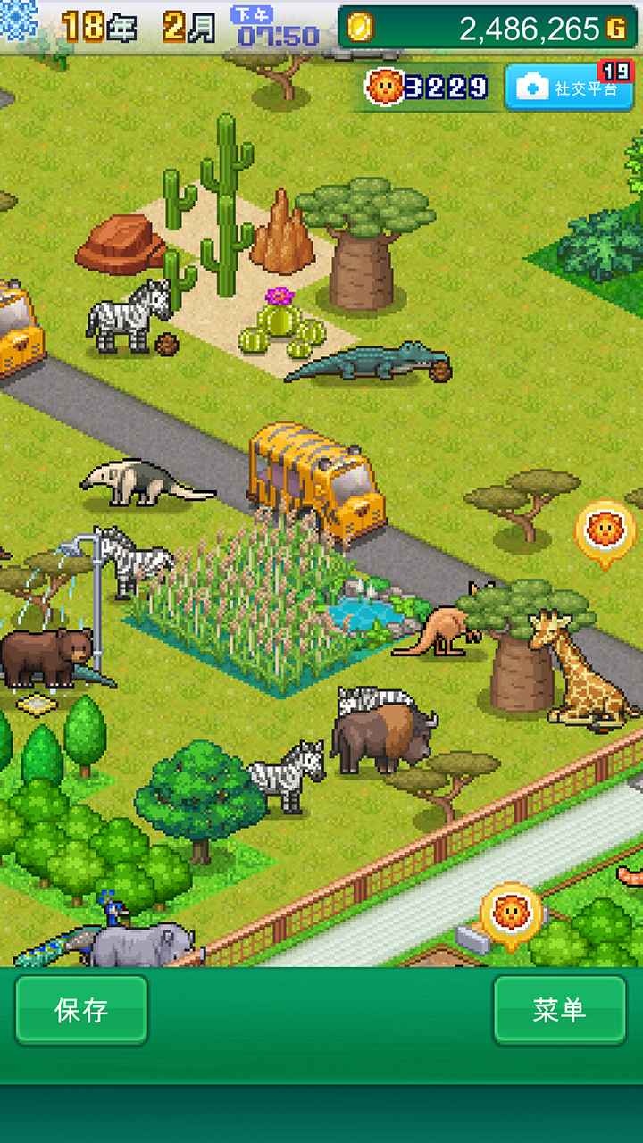 简介稀树草原、寒冷地带乃至热带雨林……向各地出发探险,寻找动物! 为各种动物提供舒适生活环境,打造大受欢迎的动物园! 开业当日,赶来参观的游客看着可爱的动物露出微笑。 给饿了的动物喂食,照料它们的生活吧。 向有些警惕的动物赠送礼物,尝试和它们打好关系。 苹果、树果、肉……配合动物生态选择礼物。 好再通过摆放植物,调整饲养小屋的环境! 不要忘记为游客提供舒适环境! 准备好长椅、休息场所和热狗店,就能让游客们尽情享受到日落。 园区面积扩大后可以开通园区巴士,让移动更加方便! 在同一间饲养小屋中朝夕相处的动物或许会萌生情愫……然后孕育幼崽! 如果饲养小屋中只有雄性,就通过探险或介绍所让雌性成为同伴吧。 通过紧张的邀请交涉令动物成为同伴后,请给它取个独特的名字吧。 在社交网络上饱受世界瞩目!以你的本领,努力打造5星级动物园吧!
