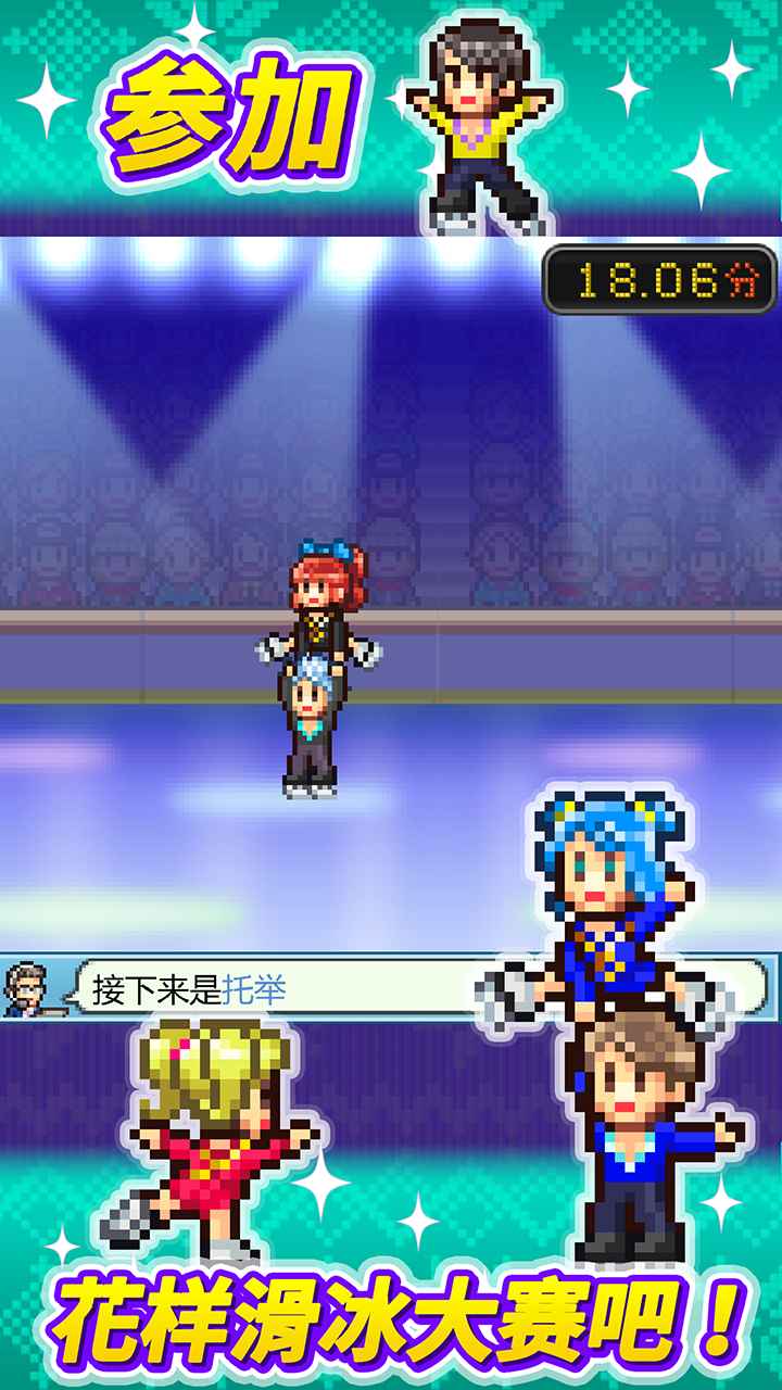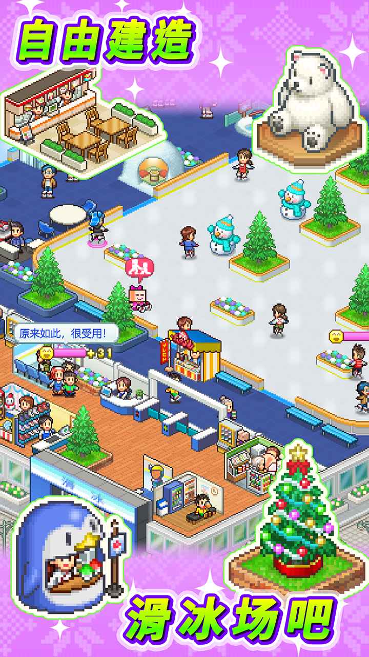 简介来经营独属于你的滑冰场吧! 培养员工,还能参加比赛哦。 首先,准备一个大型的滑冰场,吸引顾客前来游玩吧。 在滑冰场上放置物件,就能打造出让人忍不住拍照打卡的魅力滑冰场! 可以在『热身房』中放松身心,或者在『汤品吧』品尝一碗热气腾腾的汤,享受片刻温暖。 顾客的美好回忆还有可能被分享到社交网站! “要是有这样的菜品就好了!” 满足顾客的需求吧! 通过组合食材,可以开发出原创菜单。 运动后的美味佳肴会让顾客们笑容满面。 培养教练员同样非常重要。 学习『旋转』、『阿克塞尔跳跃』等多种技巧后, 制定能够充分发挥实力的演技节目,挑战比赛吧! 如果获胜,滑冰场必将声名远播! 听到传闻的其他城镇镇长也慕名而来。 将滑冰场迁至新的地方,在全世界增加更多忠实顾客吧! 来吧,一起打造一座让顾客留下难忘回忆的五星级滑冰场!
