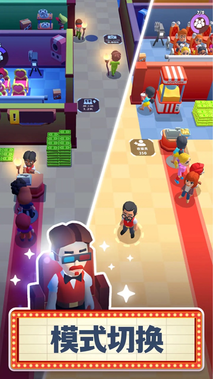 简介准备好了吗?灯光、摄影、开麦啦!你的专属电影院正等待着一位传奇经理人! 有没有想过,亲手打造一个属于自己的电影王国?在这里,你将摇身一变成为炙手可热的影院老板!从一个只有爆米花小摊和一块银幕的迷你影厅开始,一步步实现你的大亨梦! 亮点特色: 打造你的梦幻影院 看着空荡荡的大厅变得人山人海,简直太有成就感了!不断扩张,解锁新的放映厅,从普通厅升级到豪华3D巨幕,甚至还有超酷的汽车影院等着你来经营! 手忙脚乱?轻松管理! 亲自上阵,为排着长队的顾客售卖电影票、递上香喷喷的爆米花和冰爽可乐。觉得太忙了?快雇佣收银员、服务员和保洁员来帮你分担,你只需要坐镇指挥,看着钞票滚滚而来! 升级!再升级! 顾客的快乐就是你的动力!把硬邦邦的座椅换成情侣专享的爱心沙发,提供新潮的3D眼镜,再来点香槟和甜点……打造独一无二的观影体验,让回头客挤满你的大门口! 解锁全球,惊喜不断 你的电影帝国绝不止步于此!在全球开设分店,举办星光熠熠的首映礼,还可以去好友的影院串串门、帮帮忙,看看谁才是真正的经营奇才! 准备好迎接络绎不绝的观众了吗?立即下载,开启你的银幕传奇吧!