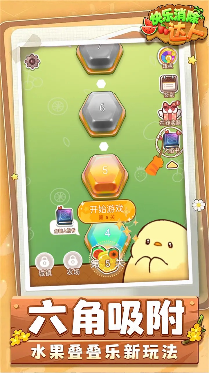 简介告别传统消除套路,《快乐消除达人》带你解锁蜂巢转盘新玩法!滑动指尖,将 Q 萌六边形水果片摆放到旋转的蜂巢平面上 —— 相同水果片会自动吸附聚集,当单个格子集齐 10 颗同款,即刻触发爆浆消除特效,哗啦啦的爽感根本停不下来~