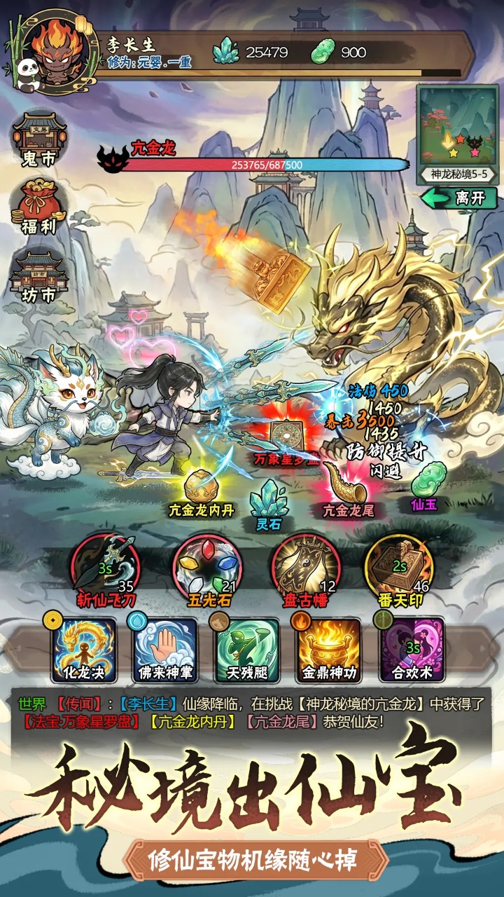 简介《修仙:从挂机开始》是一款休闲放置挂机,佛系刷宝,秘境探索的修仙游戏。 在这里可以享受挂机修仙的快乐,游戏把修仙和放置挂机刷宝结合,打造独特轻松自由的修仙游戏。 游戏玩法详细介绍 【放置挂机修仙刷宝】 轻松休闲,可离线挂机,修为自动涨。实乃上班摸鱼修仙神器。 放置收菜打宝养宠,简化操作,只需享受变强刷宝的乐趣。 自由刷宝,多样法宝、仙法技能、妖宠随机掉落。 无定时定点的活动任务,让你随上随玩,佛系修仙。 【妖宠融合变异培养】 抓捕、培养、融合,创造只属于你的洪荒异兽。 捕捉各类妖兽,每只拥有独特血脉与技能。 将两只妖宠放入融合灵阵,有几率诞生继承全新融合变异神兽。 策略搭配血脉,培养出战、辅、控全能的佳拍档。 【自由选择修仙流派】 经典剑修,丹修,符修等多种流派自由转换。 每个流派专属不同特色法宝装备、仙法技能自由搭配。 飞升后修魔修仙,任君自选。 【自由加入修仙宗门】 自由选择你的道统:没有强,只有合适。每个宗门可以学会不同修仙副业路线。 合欢宗:同心共进,情深则道深。 炼丹阁:一鼎一炉,炼尽天地精华。 魂殿:御魂驱鬼,行走于阴阳之界。 神锻宗:匠心炼器,造就不灭神兵。 药王门:滋养万物,通晓生命本源。 你的选择,决定你的社交、成长与战斗方式。 【自创你的仙法技能】 无限创造:你的道法,你来定义 突破技能书的限制,成为真正的“创道者”。 自创仙法系统:融合基础五行法则,投入你的领悟,随机生成独一无二的专属技能。技能名称、特效、效果皆由诞生过程决定,并可分享、评级、鬼市交易。 深度法宝炼化:每一件装备都拥有随机词缀。你可以锁定珍稀属性,重铸其余部分,通过策略性培养,打造完全贴合你Build的毕业神器。 【还有众多其他玩法等你体验】 修仙鬼市:交易捡漏尽在修仙鬼市。 打造法宝:除了掉落意外,还可炼器打造极品法宝。 修仙种田:开垦灵田,种植珍稀药材,触发灵植变异,收获高阶素材。 全能工坊:从炼制基础丹药到锻造本命法宝,所有产出皆可自用或参加鬼市交易。