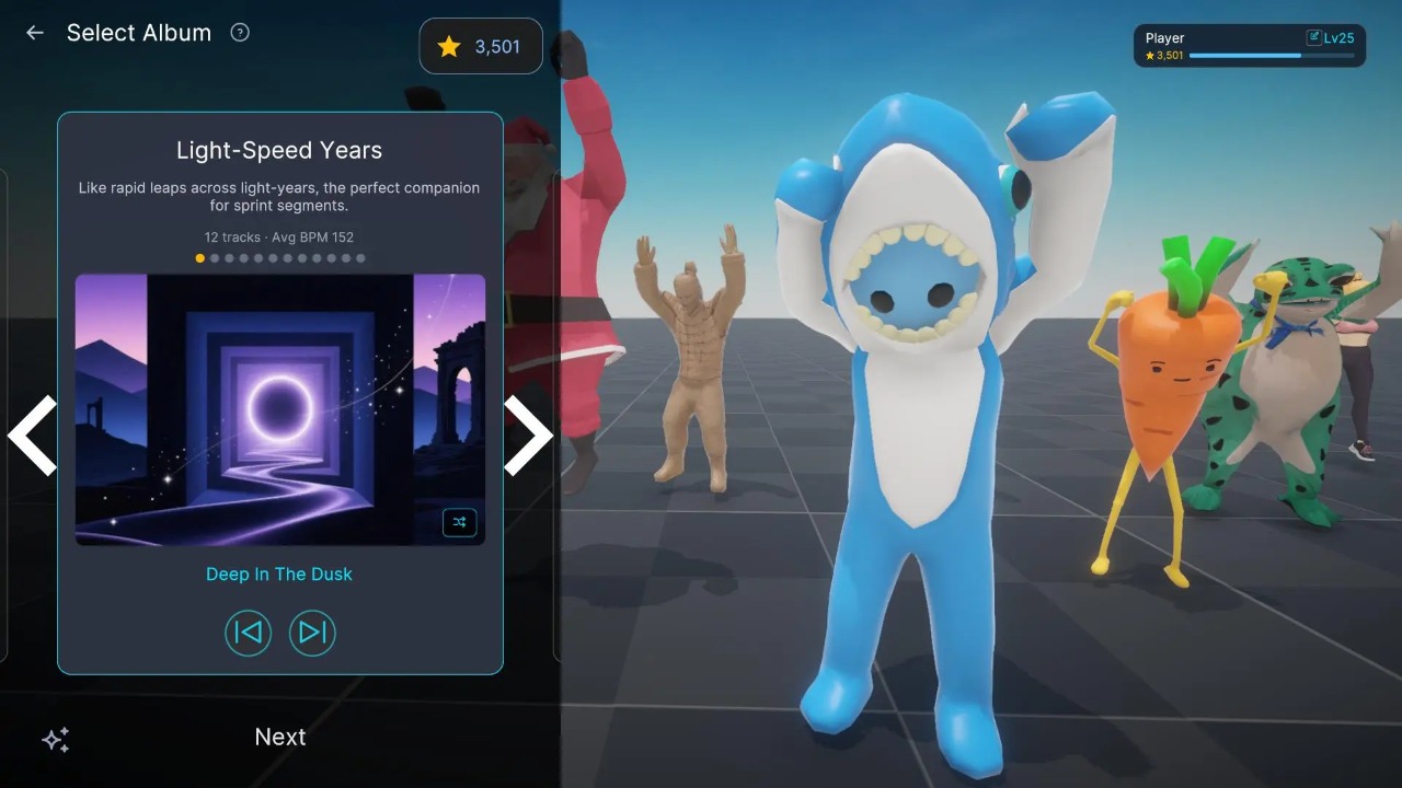 简介用全身打节拍的健身游戏。跟着虚拟教练在音乐节奏中原地运动,不需要VR,站在电脑前就能练。200 动作,150 音乐,80 教练。支持导入自己的音乐,支持自定义动作组合。让运动变得有趣,养成健身习惯。