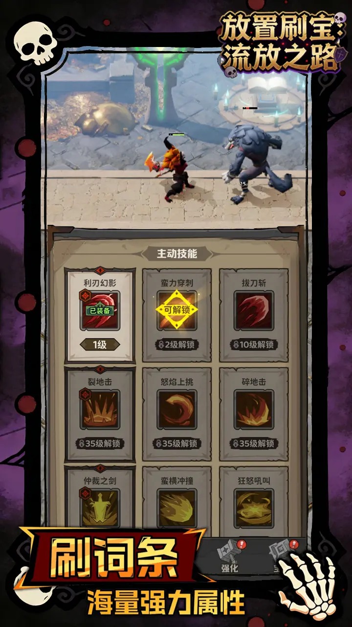 简介放置刷宝,千种词条、道具搭配、上百种技能组合、超多副本、交易、玩法养成系统!