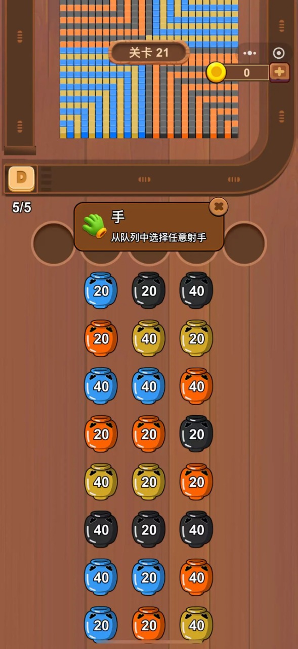 简介这是一款休闲类小游戏,玩家通过点击屏幕上不同颜色的炮台,炮台乘坐托盘进入传送带,发射子弹消除相同颜色方块,消除所有方块,以达成关卡目标。游戏中还有丰富的道具和特殊元素,可以帮助玩家更轻松地完成挑战。