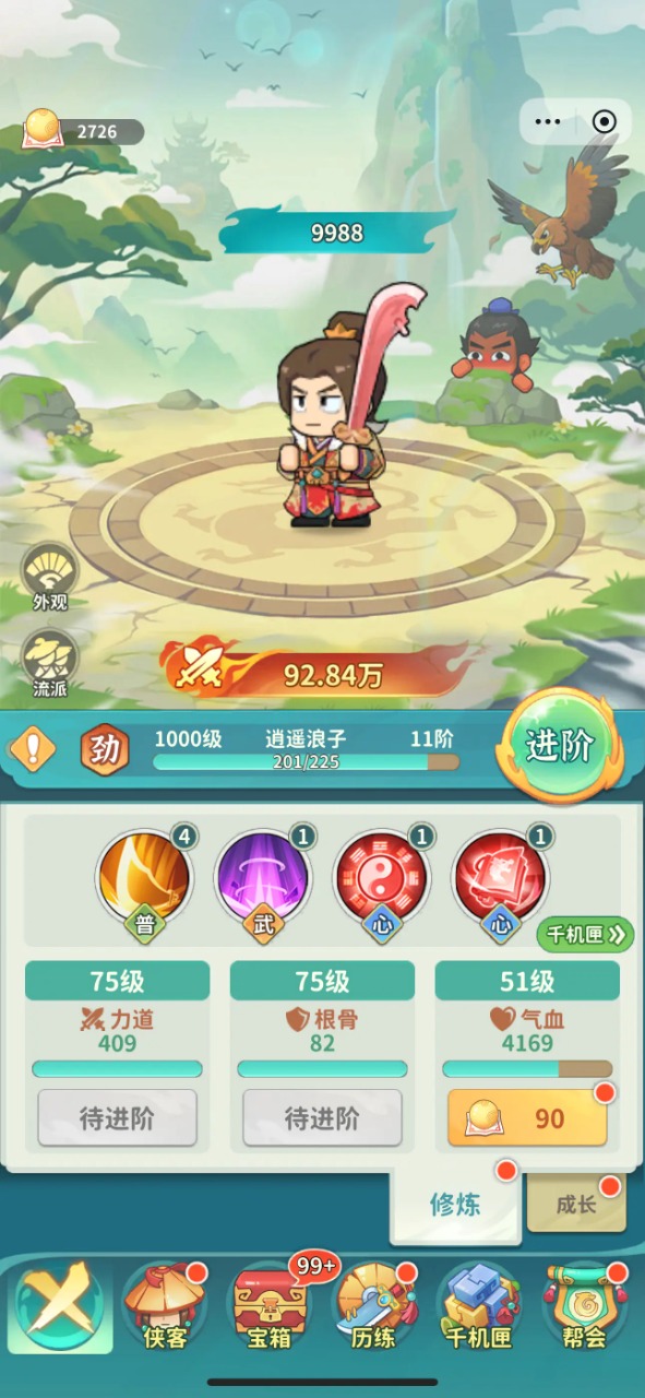 简介亲爱的盟主大人! 欢迎来到《大武林》,这是一款前所未有的独特游戏,将经典武侠题材和热血画风完美融合,用搞笑无厘头全新演绎,带来一场别开生面的武侠江湖体验!同时福利也给你拉满~ 登入送1000抽~ 隔日送段公子,7日送小笼女~ 心愿单保底必出心仪侠客~ 新手第7天送自选宗师侠客~ 武侠谁强! 搞笑我们扛! 在这里,那些耳熟能详的经典武侠角色被刻画成了搞笑无厘头的形象。大侠们不再是一脸严肃、风度翩翩,他们或是着奇奇怪怪的发型,或是穿着让人忍俊不禁的服装,行为举止更是充满了喜剧色彩。身为大侠,不仅要在江湖中闯荡,也要体验生活的各个层面。你可以拿起工具去割草、砍树,为城镇建造收集材料;也可以走进酿酒坊,亲手酿造香醇的美酒。当城镇面临危机时,你又能瞬间化身战斗高手,在割草般的战斗中,轻松击退来犯之敌,守护城镇的和平与安宁。 现在就让小的为您介绍一下我们的大武林吧! 【经典热血,不一样的无厘头】 燃系画风撞上 「不照常理出牌」 的武侠世界,直接把 「搞笑无厘头」 玩出了新高度,每一秒都让你笑到捧腹,却又在热血瞬间燃到起鸡皮疙瘩! 【自创武学,发挥你的想像力】 打破传统武侠招式限制,游戏为你带来自由度拉满的自创武术系统!你可以随心所欲组合招式动作,打造出专属你的搞笑又强力的独门武学,让每一次战斗都充满新鲜感与欢乐。 【趣味经营,大侠都给你工作】 「干活」 从不是枯燥的重复操作,更不是普通居民的专属 —— 连本该闯荡江湖的大侠,都扎进小镇琐事里,用充满武侠味又离谱的方式干活,每一项经营任务都成了 “大侠变形记” 现场,边笑边干,越干上头! 【各式美人,邂逅红颜觅良缘】 与各式各样的红颜们相遇,从不是刻意安排,而是藏在小镇角落的惊喜奇遇。红颜们不仅貌美有趣,更是大侠经营与冒险路上的 “强力后盾”,助力无处不在。 【自由搭配,阵容怎么都很强】 不同侠客各有搞笑技能与独特定位,选择不同的搭配,不仅能有新的效果,同时战斗效率拉满,还能解锁各种离谱又欢乐的合击效果,让每一场对决都变成 “笑点与爽点齐飞” 的精彩场面! ※为流畅运行,本游戏建议使用内存3G以上的装置 ※ 本游戏为免费使用,游戏内另提供购买虚拟游戏币、物品等付费服务。 ※ 长时间进行游戏,请注意使用时间,避免沉迷于游戏。