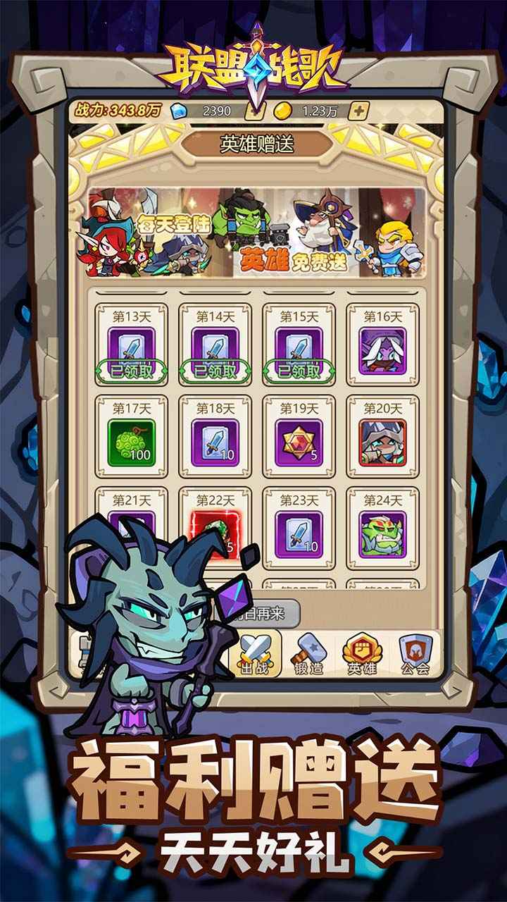简介《联盟战歌》是一款融合卡牌收集、角色扮演与策略养成元素的奇幻题材手机游戏,以西方幻想世界为背景,主打放置挂机与多元战斗模式,适合偏好轻松休闲与深度策略并重的玩家。游戏类型主要为角色扮演类(RPG)与策略卡牌结合的养成类手游,支持单人冒险、多人团战及公会协作等多种玩法。 游戏特色 【多元英雄收集与深度养成】 玩家可招募多样化的英雄角色,每位英雄拥有独特的技能、背景和职业特性。通过装备强化、符文镶嵌、天赋解锁等系统进行个性化培养,打造专属强力战队。输出型英雄可侧重攻击符文,坦克则强化防御属性,成长路径高度自由。 【自动战斗与离线挂机机制】 游戏采用放置玩法,支持托管战斗与离线收益。即使不在线,英雄也会持续征战并积累经验、金币和装备资源,适合碎片化时间管理,降低“肝度”压力。 【策略性战斗与阵容搭配】 战斗强调策略布局,英雄之间存在阵营与属性羁绊,合理组合可触发额外加成(如攻击力提升、技能强化)。需根据敌方阵容灵活调整队伍,例如采用“前排坦克 后排输出 辅助治疗”的经典结构,或利用属性克制反败为胜。 【丰富玩法模式与随机挑战】 包含PVE副本、竞技场PVP、公会战、roguelike随机地图探索等多种玩法。随机生成的地图带来不可预测的挑战内容,增强游戏可玩性与策略深度。 【精美画面与沉浸体验】 采用3D建模与精致美术风格,技能特效华丽炫目,搭配宏伟背景音乐,营造出史诗级战斗氛围,提升视觉与听觉沉浸感。 【公会社交与联合对抗】 可加入或创建公会,参与公会任务、公会战等集体活动,与志同道合的玩家共同冒险,增强社交互动乐趣。