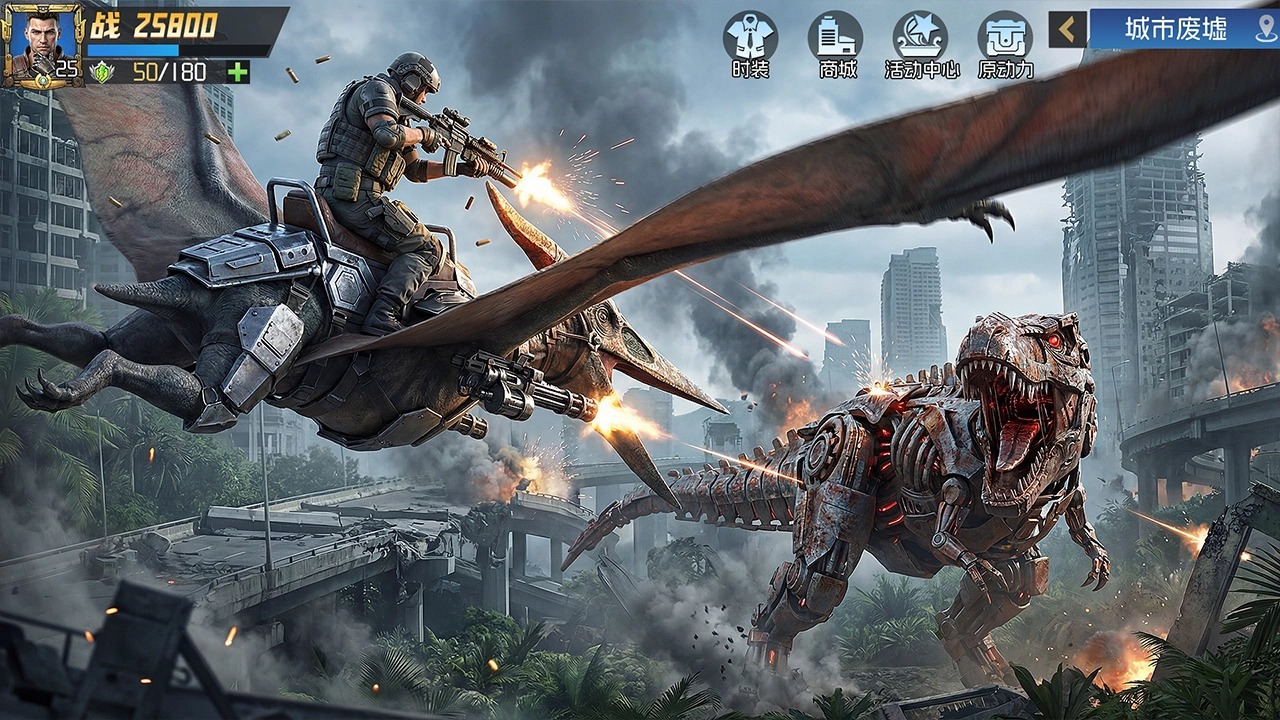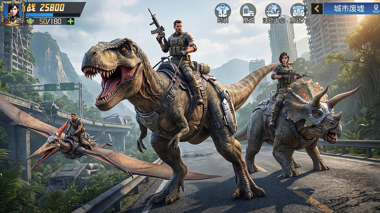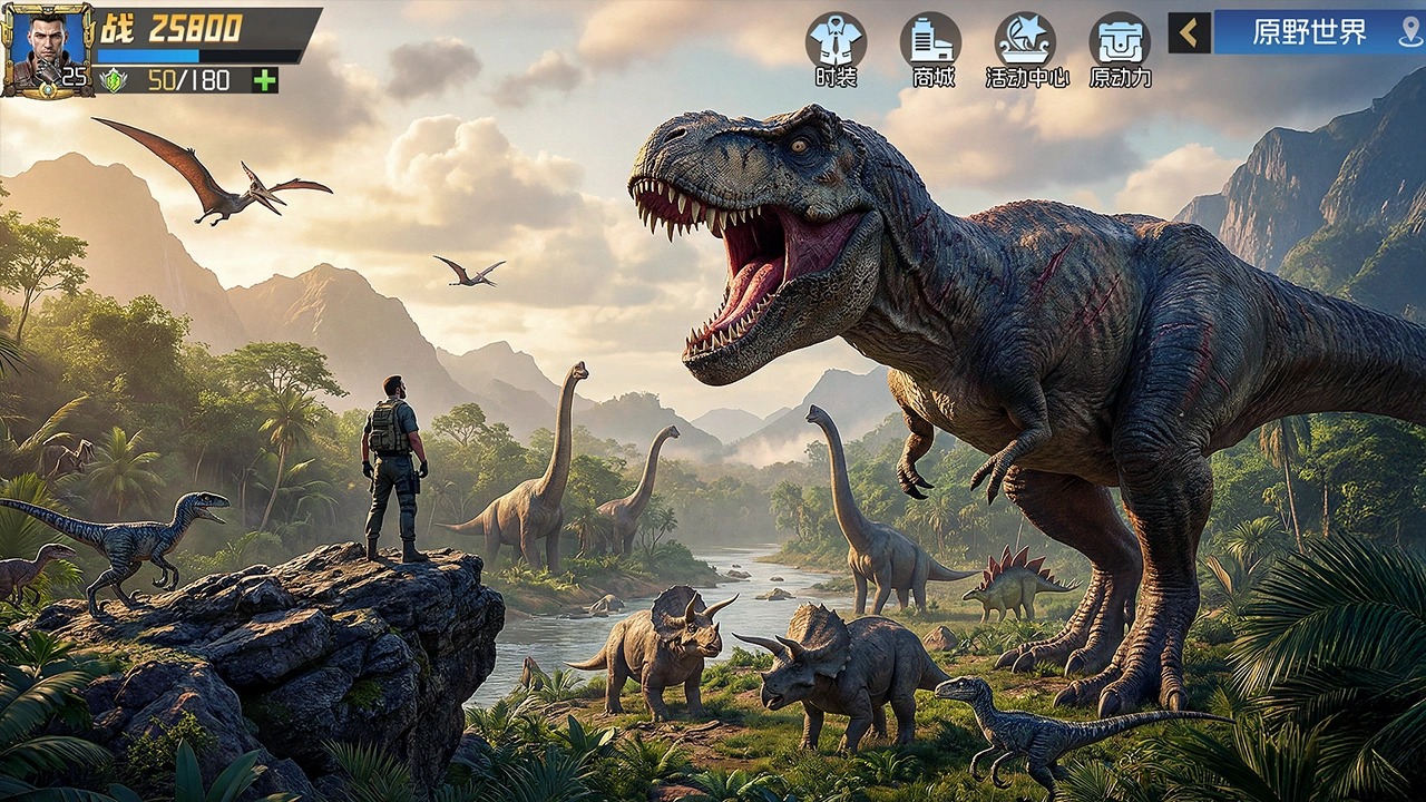 简介《代号:恐龙》是一款3D沉浸式动作冒险手游,带你重返广袤壮阔的史前大陆,化身孤勇猎手,在恐龙横行的绝境中求生、探索、征服。 你可操控各类现代化枪械,搭配燃烧弹、麻醉弹等特殊弹药,利用掩体、走位与地形优势,与体型庞大的恐龙展开紧张对决,精准打击弱点,体验枪火与巨兽碰撞的极致爽感。 高自由度开放世界涵盖丛林、沼泽、火山等多样地貌,你可驯服各类恐龙作为伙伴,骑乘飞行翼龙空中突袭,驾驭霸王龙并肩作战。 还有动态生态、基地建造、史前遗迹探索等玩法,沉浸式还原史前生存的刺激与热血,解锁恐龙世界的隐藏真相,开启属于你的传奇之旅。