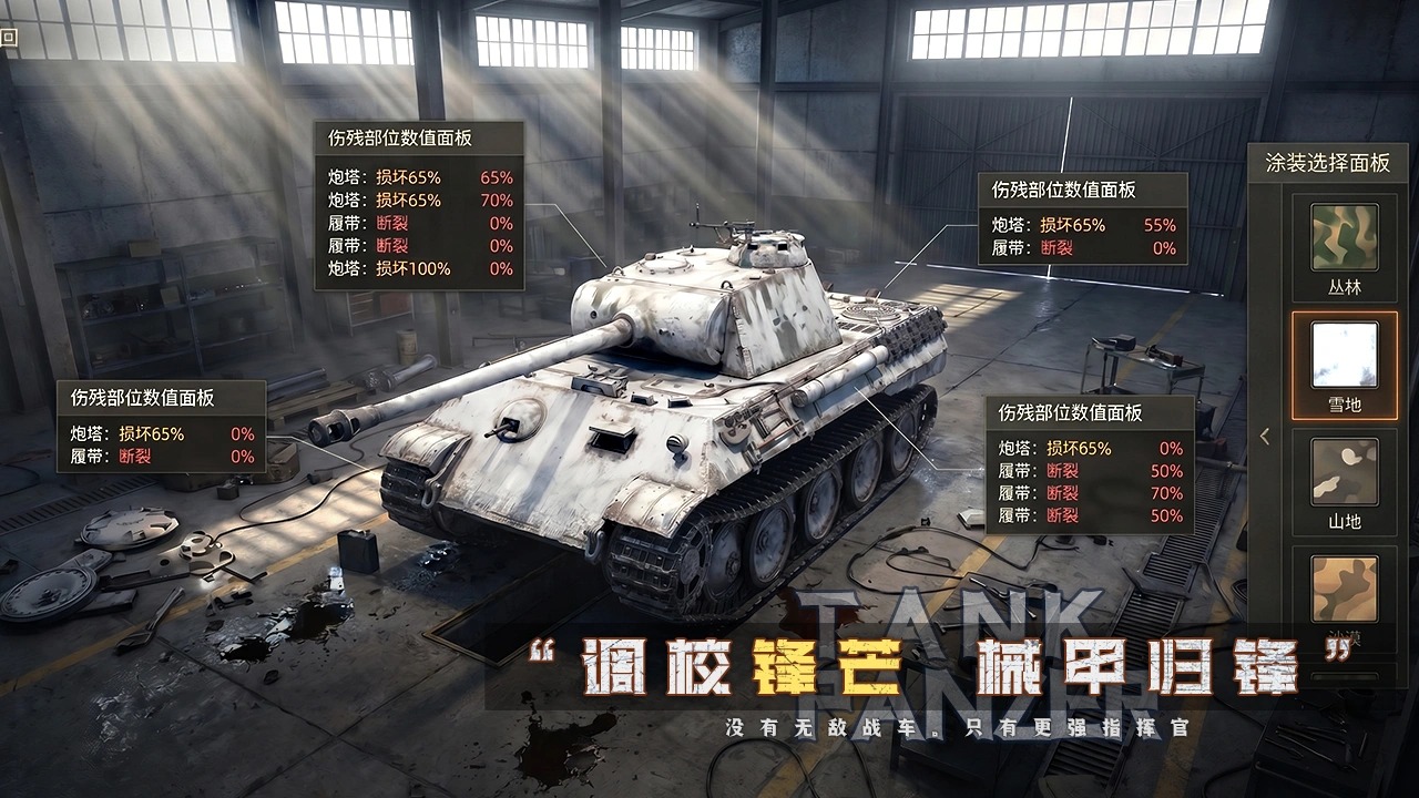 简介硝烟漫卷苍穹,铁甲撕裂沉渊,战争游戏的烽火划破时空,一个热血沸腾、波澜壮阔的战争世界轰然降临。光影交织间,是历史的厚重与战场的炽烈,每一缕硝烟都藏着不屈的信仰,每一辆坦克都镌刻着时代的锋芒,等待指挥官踏破尘烟,执甲出征,以谋略定乾坤,以铁甲镇山河。 游戏特色: 【画风质感出色】 写实画风还原战车全貌,坦克细节拉满,金属质感与战场磨损感兼具,光影效果细腻有冲击力。 【视听体验震撼】 技能特效炸裂,炮火光影极具视觉张力;搭配沉浸式立体音效,涵盖炮弹、引擎、战歌等元素,氛围感拉满。 【收集玩法丰富】 可自由收集经典真实坦克,满足收集需求。 【策略玩法灵活】 指挥官可自由搭配坦克阵容、灵活放置策略,即时战场博弈感强。 【玩法轻松适配】 无需盲目肝度,兼顾策略博弈与热血战斗,操作适配各类玩家。