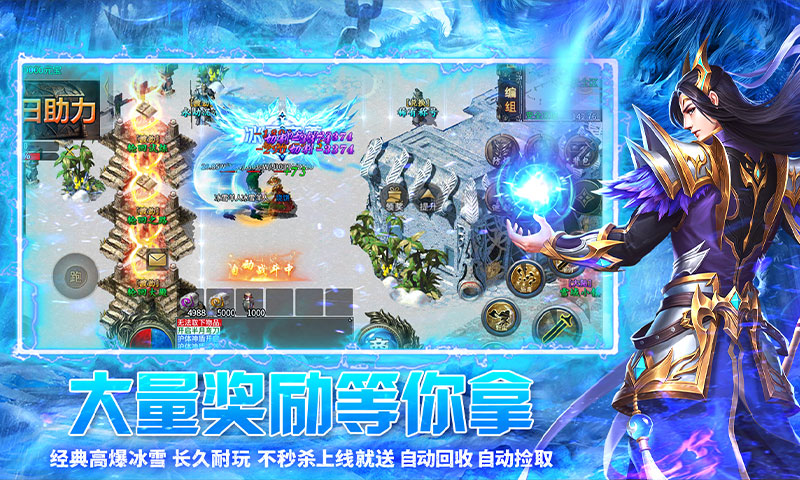 "经典高爆冰雪,长久耐玩,不秒杀上线就送,自动回收,自动捡取。