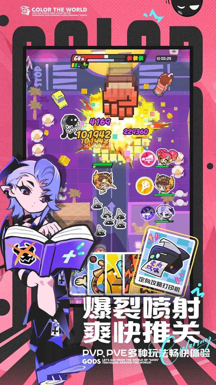 心愿自选,拒绝歪卡~无论是恶魔还是天使都任你pick~超会营业的地偶爱神丘比特,”无意”引发一场又一场爆炸的恶作剧之神洛琪,誓死守卫披萨不被菠萝”污染”的教会圣女狄安娜,全员“不正经”神格任你解锁。全员共享养成进度,无缝切换战斗搭档,见证不同神明碰撞出的奇妙颜色反应,你的染色小分队永远充满新鲜感!