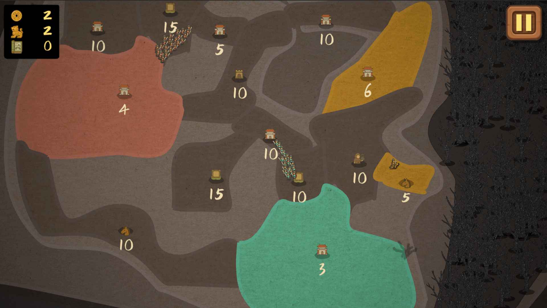 简介操作简单,休闲策略的小游戏,玩家可以体验到运筹帷幄,调兵遣将的策略体验,玩家可以运用不同兵种和攻击策略打败敌人,占领所有城池获得胜利!