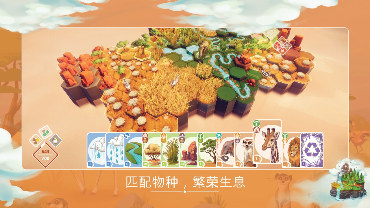《保护区》 是一款宁静平和的益智游戏,您可以在游戏中通过巧妙放置动植物卡牌来构建整个生态系统。无论是种植森林、营造湿地,还是平衡草甸上的食物链,您的每一个决策都将塑造不同生态群落的演变轨迹。