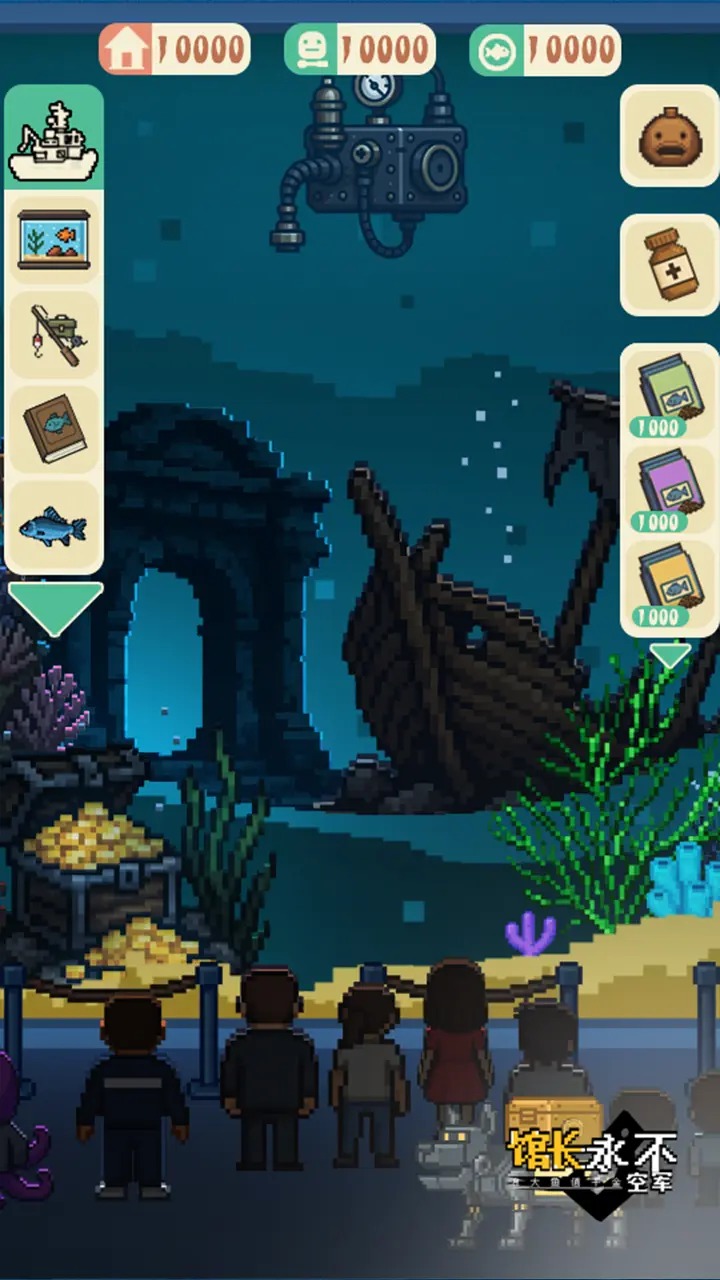 快来试试你的运气,钓起传说中的鱼,并经营你的海洋展馆吧!