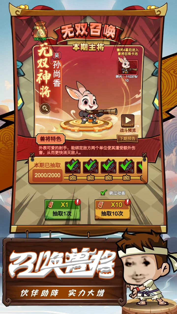 • 海量名将,羁绊交织:云集史上豪杰,名将谋士皆可纳入麾下。武将之间羁绊联动,情义相投则战力倍增,策略组合变幻无穷,共谱战场佳话。