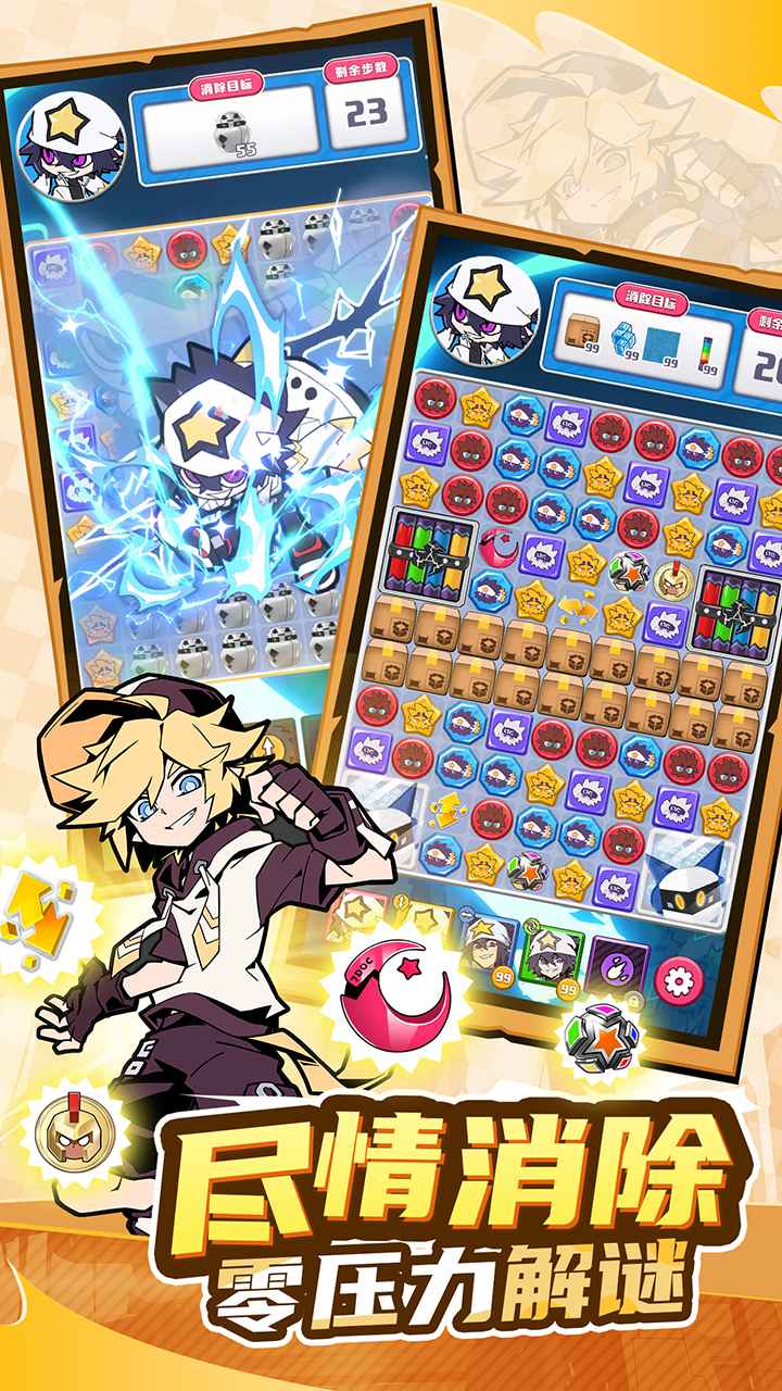 指尖律动之间引动元力风暴,体验热血丝滑的不锁屏三消玩法,更有原作角色登场支援,简约而不简单,轻松展开你的战斗冒险!