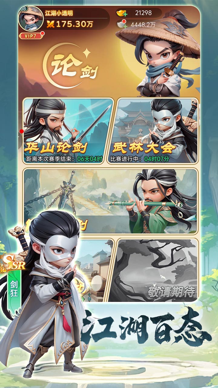 《武侠称霸》是一款以武侠为题材的卡牌回合制手游,在这里,玩家从一名江湖小虾米开始,结交侠客,提升自我,逐步成为一代武侠巨擘。游戏玩法分为PVP、PVE两部分,玩家完成游戏内的各类任务从而收集侠客并提升等级,畅游江湖。