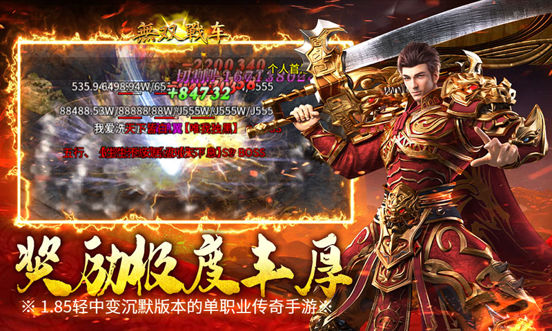 无双战车是一款1.85轻中变沉默版本的单职业传奇手游,游戏内含大量专属地图和剧情玩法,每个大陆都有独特的专属装备。一柄剑斩破江湖恩怨,一壶酒饮尽世间家情,丰富的游戏内容和玩法,竞争激烈,成长体系多样不枯燥,如果你还没想好玩什么,不妨来试试!!!