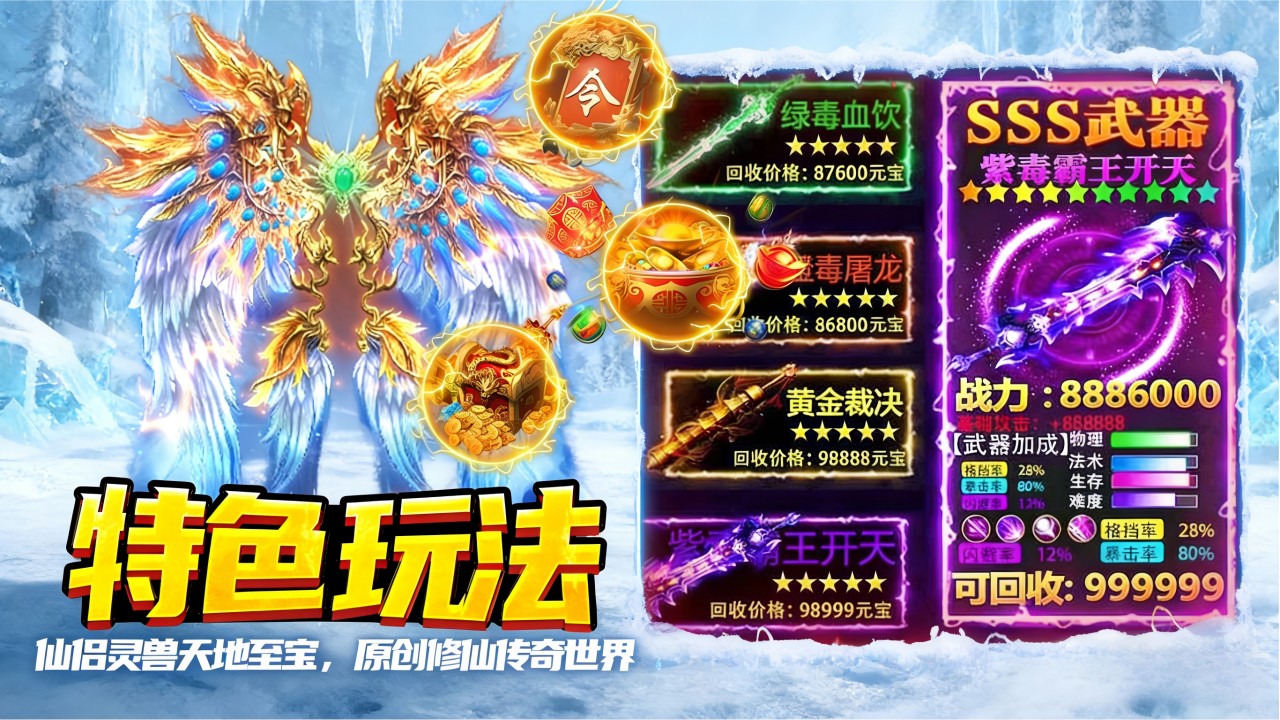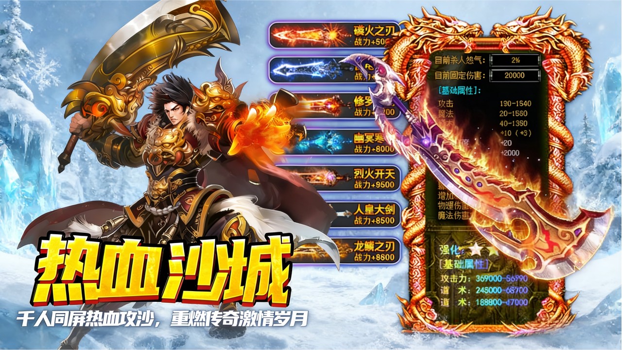 《剑御龙城》是一款超变单职业冰雪传奇手游,福利加码,登录即享极品时装、专属特权、千万灵符,不肝不氪轻松爽玩!百张地图超多BOSS,全屏吸怪一刀爆满屏,小怪也能爆终极,自由回收散人打金!原汁原味经典玩法,兄弟齐心热血攻沙,万人同屏激情重燃,问鼎沙城续写传奇! 【登录豪礼】 登录就送自动回收、全屏拾取、百万切割、专属称号,等级直升1000级,七日登录送全套特戒! 【装备靠打】 地图全开爆率全开,刀刀切割刀刀光柱,神装全靠打,自由交易一秒回收,海量灵符持续获取! 【白嫖万岁】 打怪得真充,在线奖励千万灵符,海量充值免费领,绝版时装上线就送,白嫖也能当大哥! 【全新玩法】 传奇与修仙结合,人界、灵界、仙界等你探索,修仙剑灵,仙侣神兵,至尊神器,世界BOSS等多玩法! 【散人专服】 超值特权大陆直飞,一步登天直升100转,首爆双倍,百万灵符,自动巡航全屏吸怪,发育快人十倍!