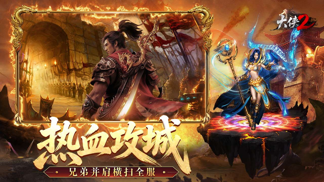 传奇重燃,侠影归来!《大侠2》是一款高爆率、重热血的MMOARPG传奇手游。深度还原战法道三职业体系,搭配专属合击神技,无限连击爽感拉满。主打刀刀暴击、全屏切割、百倍爆率!更有千人攻城、跨服对战、福利BOSS等全新玩法,兄弟并肩征战,重现当年热血时刻。全服无VIP门槛,上线福利拉满,稀世羽翼、高级武器、珍稀材料免费送;绿色打宝环境,装备全靠爆,小怪也能出终极! 《大侠2》首届武林称霸赛即将开启!一剑定乾坤,逆袭称榜一!诚邀各路大侠共赴江湖,一战成名,铸就专属传奇! --游戏特色-- 【豪礼相送 畅玩江湖】 海量福利上线即领,零门槛畅享成长资源,平民玩家友好,打宝毫无压力,轻松开启热血征程! 【百倍狂爆 全屏闪光】 告别传统枯燥刷装,打造全域超高爆率体验!刀刀见彩、全屏闪光,让你每一次点击都是欧气的见证,每一份努力都能转化为真实战力与收益! 【神装觉醒 纵横武林】 终极神装自由掉落、可交易保值,搭配专属养成体系,战力飙升碾压强敌,凭神装称霸全服战场! 【千人攻城 一战封神】 从帮会攻城到跨服竞技,从个人巅峰赛到全服争霸,多层次 PVP 玩法同步开启。与兄弟并肩争夺城池霸权,书写江湖传奇。