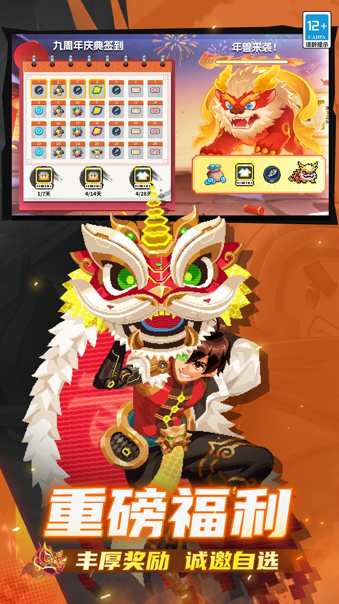巅峰乱斗,胜者为王!《元气骑士》九周年全新版本重磅来袭!全新PVP玩法-巅峰乱斗开启,8人乱斗,限时决胜!两名全新角色登场,元气弹新关卡、混沌虚空新难度,等你挑战!周年签到领自选付费角色、自选付费皮肤,参与年兽来袭更可赢取九周年宠物「来财」等限定好礼!快来体验吧!