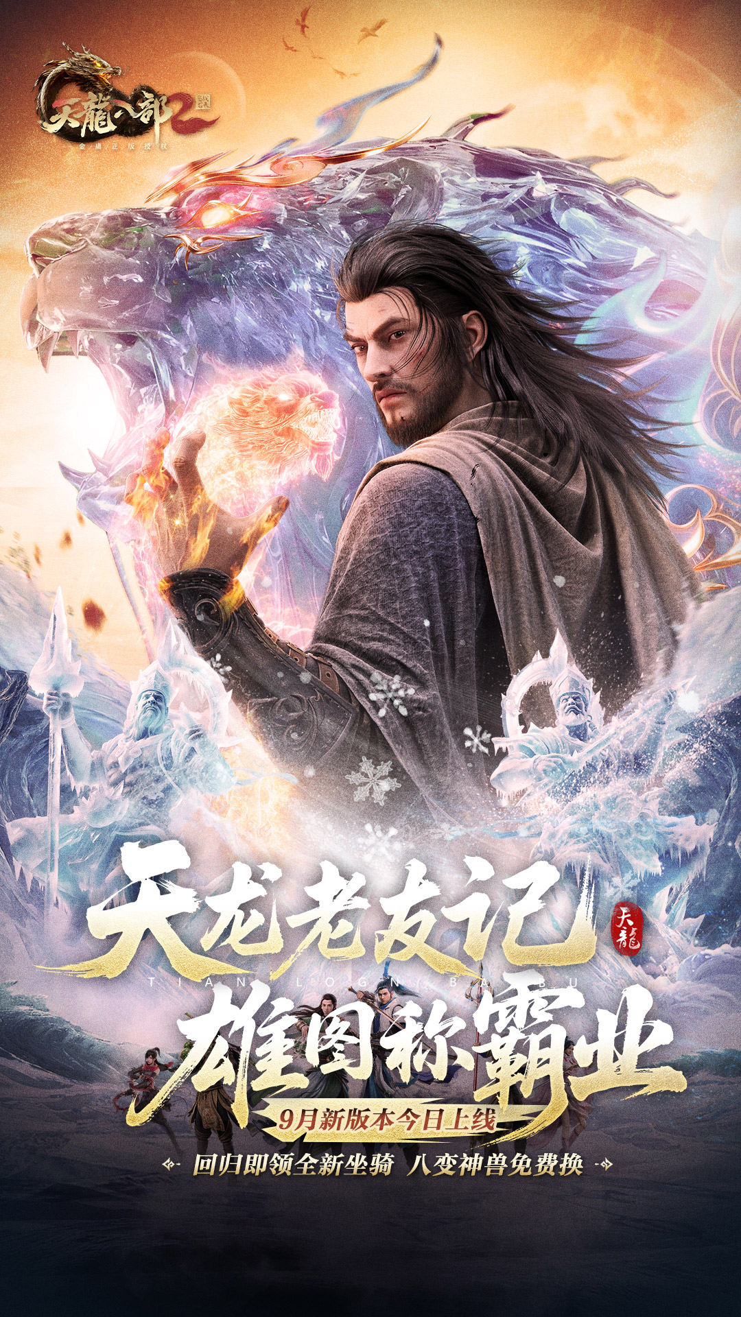 天龙老友记,雄图称霸业。《天龙八部2》手游全新资料片“雄图霸业”今日上线!副本挑战再出新局,前往【迷瘴林渊】拯救被蛊惑的师兄师姐,门派的未来全系少侠之手!全新“老友”专属活动,专属坐骑上线即领,8变神兽唾手可得,故友新知豪礼送不停!天龙2丰厚惊喜已经备下,静待少侠同铸江湖传奇!