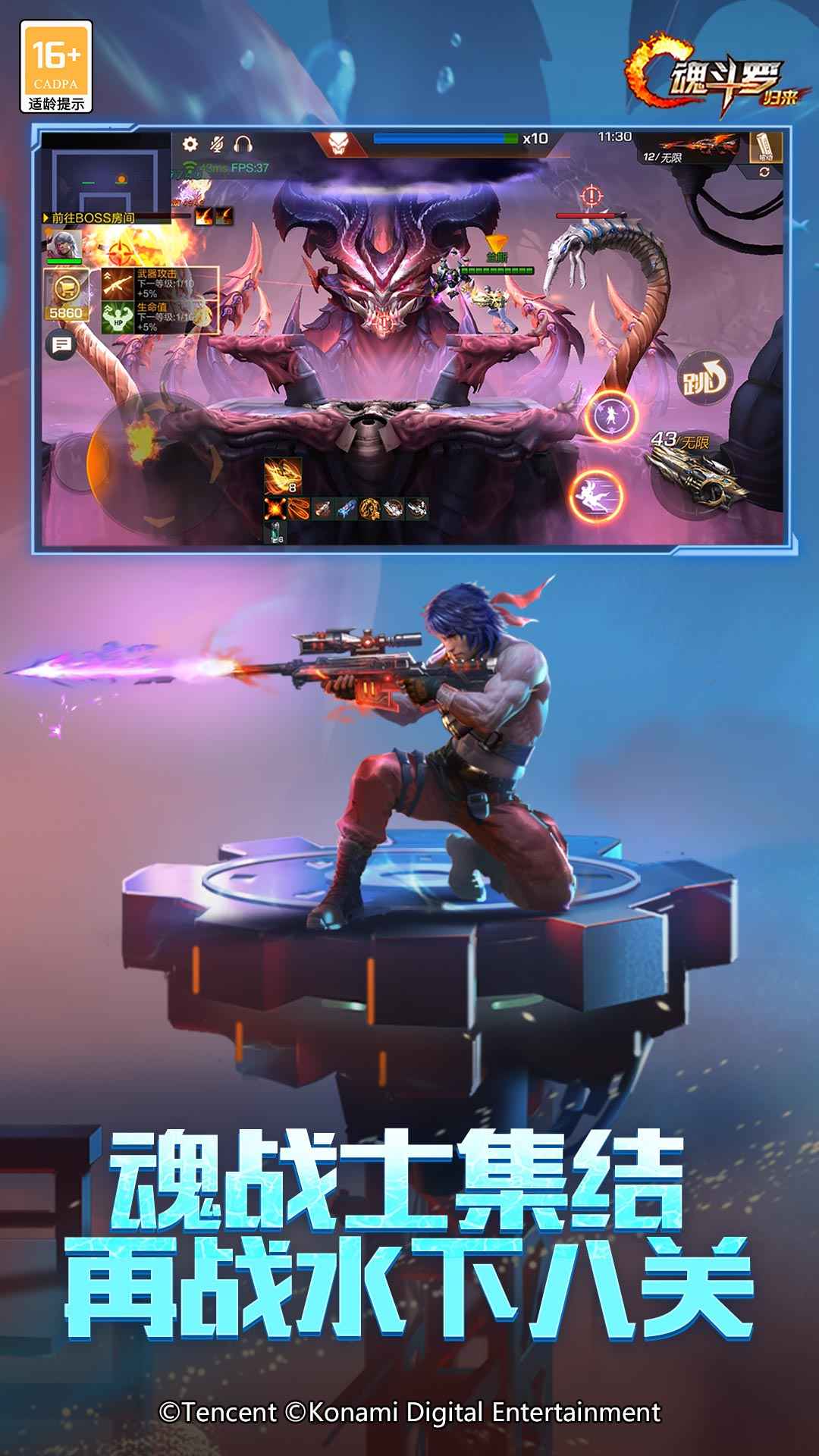 正统续作,革新射击!《魂斗罗:归来》是由腾讯联合日本KONAMI共同研发,正版《魂斗罗:归来》动作射击手游。丰富弹幕、武器带你挑战万变战场;还原经典魂斗罗玩法与兄弟一起挑战BOSS;创新添加PVP竞技实现3V3天梯对战;延续经典双人模式,全民组队火力全开!精英集结,王者归来,让我们一起战斗,并肩打通关!