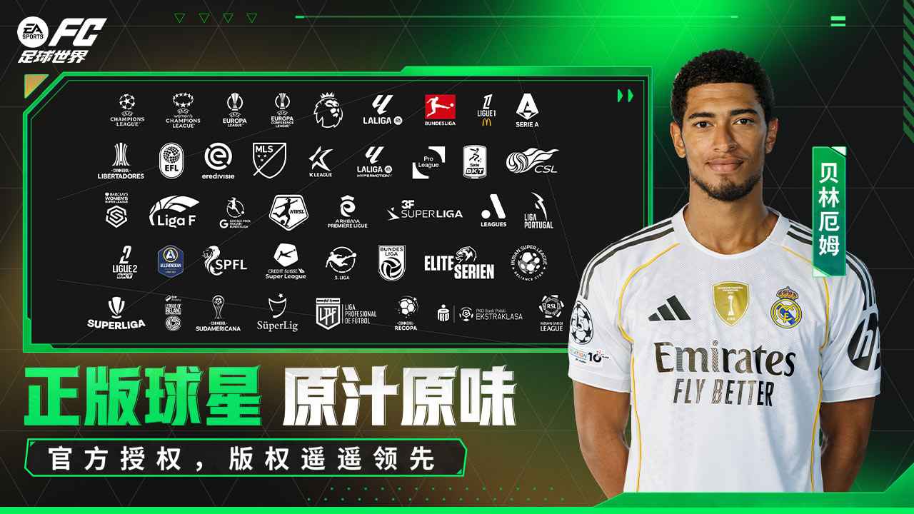 《FC足球世界》是由EA SPORTS研发、腾讯游戏发行的足球竞技手游,汇聚超19,000名真实球星、690支球队与35个联赛,从现役巨星到传奇名宿全面收录;收集养成球星、组建梦幻阵容,体验真实足球的视觉画面、简单易上手的操作玩法和好友同玩的社交氛围——就来《FC足球世界》!